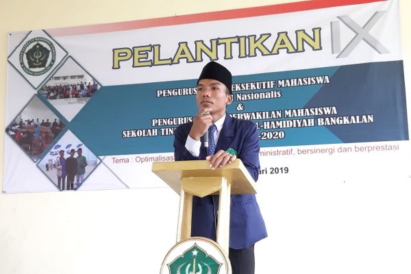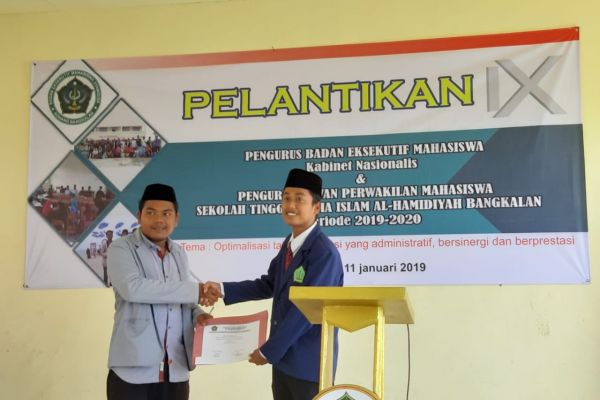 Konang, Bangkalan. 11-01-2019, acara pelantikan pengurus BEM(Badan Eksekutif Mahasiswa) kabinet Nasionalis, dan pelantikan DPM (Dewan Perwakilan Mahasiswa) STAI Al-Hamidiyah periode 2019-20120 berlangsung di aula SMK. Al-Hamidiyah (jumat,07:30 WIB-selesai).
