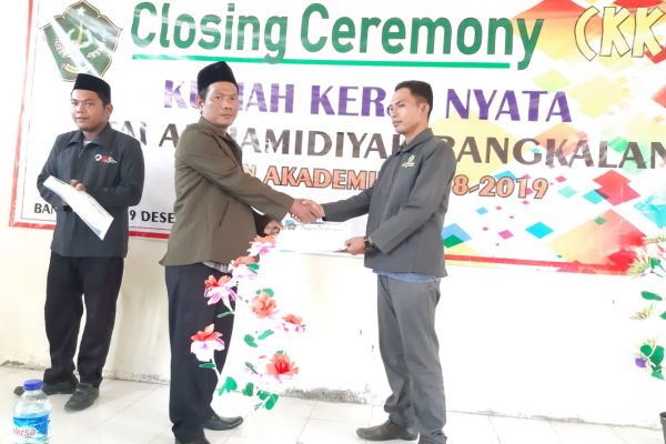 Terakhir acara ini ditutup dengan pembacaan Hamdalah sebanyak 3x oleh Ketua STAMIDIYA, dan pembacaan surat keputusan klompok KKN terbaik serta dosen pembimbing terbaik oleh Ketua pelaksana KKN, yaitu Bapak Syifa, S.Pd.I